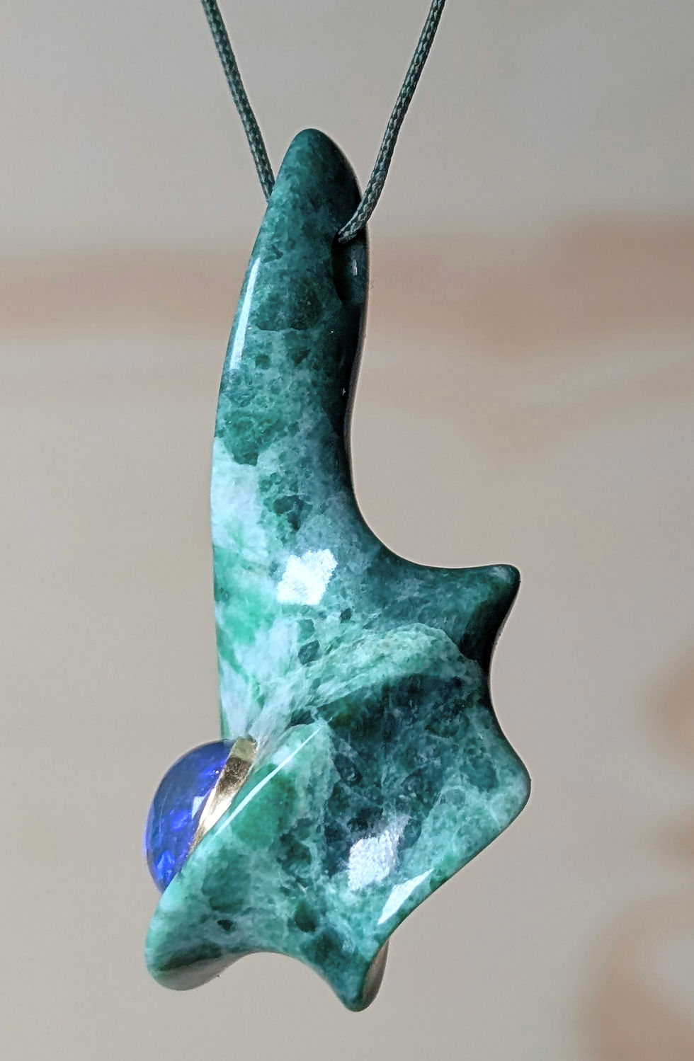 Burmese jadeite pendant inlaid with Lightning Ridge black opal